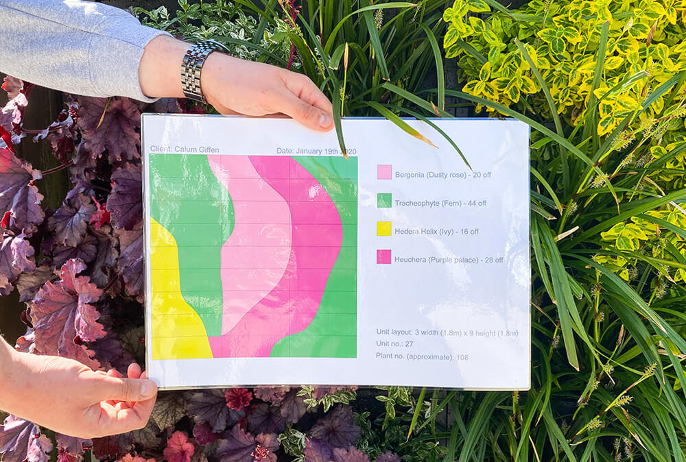 We then produce a bespoke planting design that considers your requirements and ideas as well as practical elements such as the location of the wall. Once we have an approved planting design we will be able to provide a final quotation.